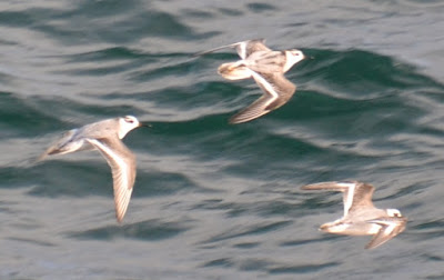 Although phalaropes are sandpipers, which are typically shorebirds, these birds spend most of the year out at sea. They are also one of the few birds where the female of the species is more colourful and larger than the male. This is because the females are polyandrous. They have to look good to attracted the attention of multiple males. In contrast, the males need to be duller to avoid detection of predators while providing most of the parental care.